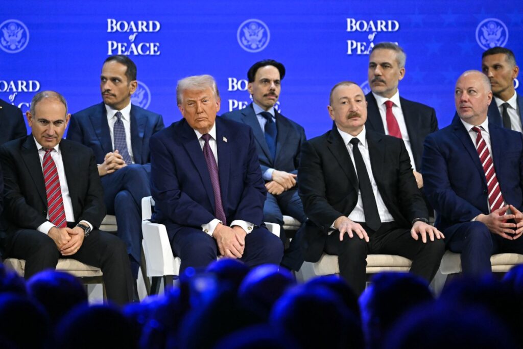 ABD Başkanı Trump'ın 'Gazze Barış Kurulu' imzalandı. Törende Erdoğan'ın yerine Hakan Fidan masada yer aldı. (Fotoğraf: Fabrice COFFRINI / AFP)