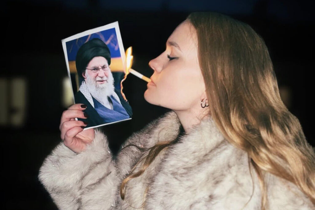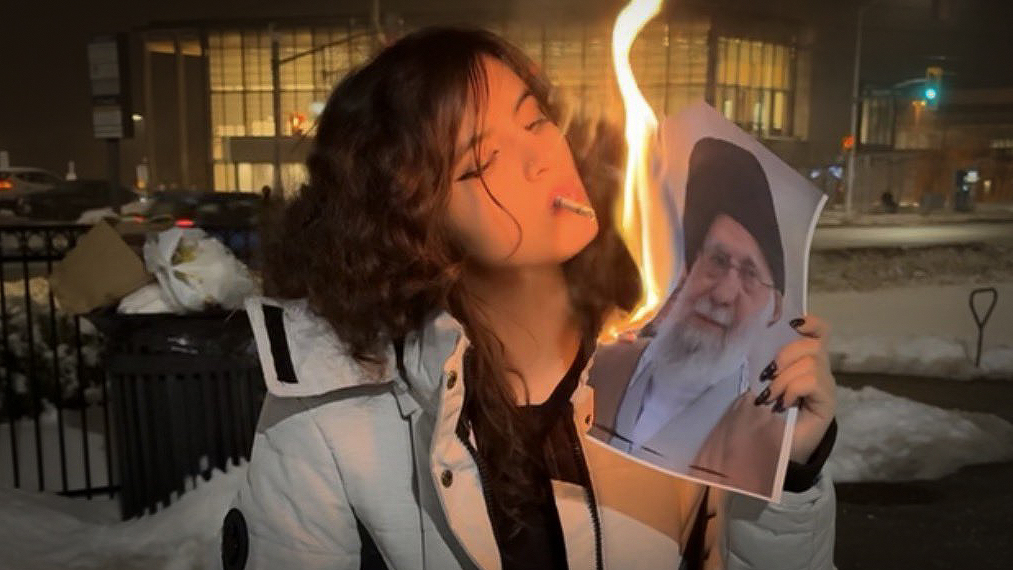 Sosyal medyada yayılan görüntülerde, bazı İranlı kadınların ülkenin dini lideri Ayetullah Ali Hamaney ile İslam Cumhuriyeti’nin kurucusu Ruhullah Humeyni’ye ait fotoğrafları ateşe verdiği ve bu alevlerle sigara yaktığı görüldü. Görüntüler kısa sürede geniş kitlelere ulaşırken, yorumcular bu eylemi “rejime yönelik sembolik ve doğrudan bir meydan okuma” olarak değerlendirdi.