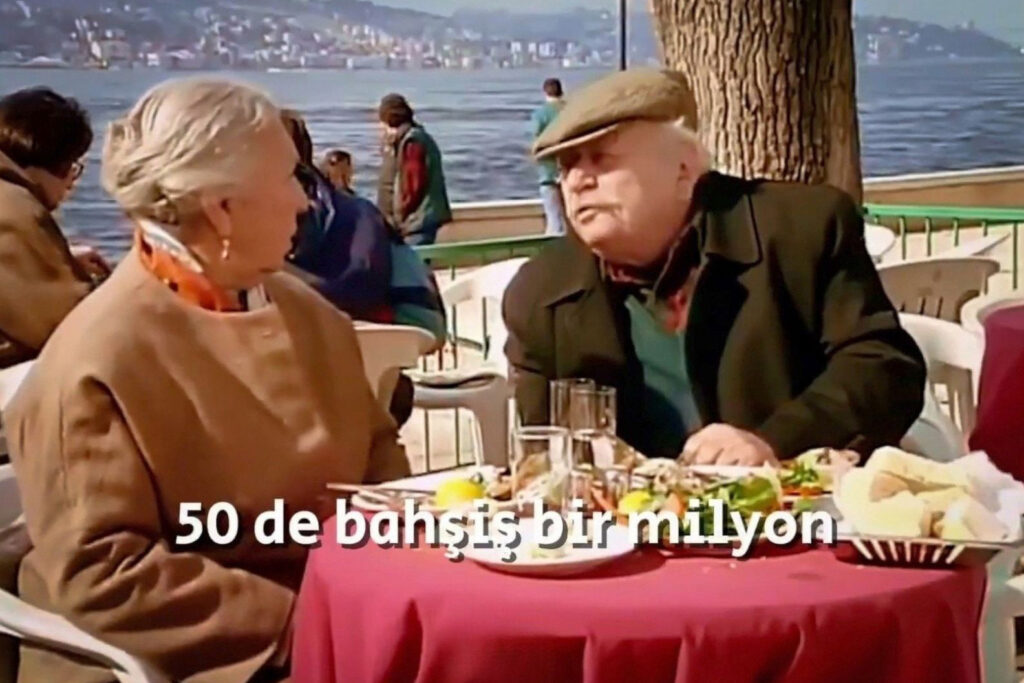 OldLaikDays (@Oldlaikdays) adlı sosyal medya hesabından paylaşılan kesitte, emekli hâkim eşini Boğaz kıyısındaki bir lokantada balık yemeğe davet ediyor. Eşinin hesabın ne kadar geldiği sorması üzerine emekli hâkim, 2 lüfer, 1 salata ve 1 duble rakı bahşiş dahil 1 milyon lira ödediğini söylüyor.
