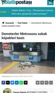 Öte yandan, Matmazel’in metroda yatarken çekilmiş fotoğrafını manşet görseli olarak kullanan ve “Demetevler Metrosu’nu sokak köpekleri bastı” başlığıyla köpeği hedef gösteren Polatlı Postası da söz konusu iddiaları reddettiği bir açıklama yayımladı.