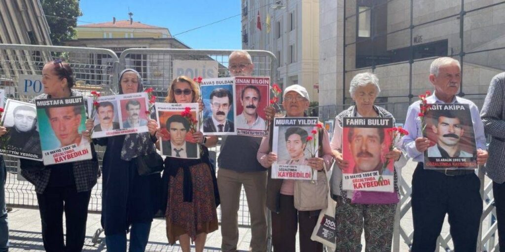 Hak savunucularının da destek verdiği bu haftaki eylemde, karanfiller ve kayıpların fotoğraflarını taşıyan Cumartesi Anneleri, Diyarbakır’ın Lice ilçesinde 1994 yılında kaybedilen aynı aileden Mustafa, Fahri, Ramazan, Ekrem ve Ali Bulut’un faillerinin açığa çıkarılmasını istedi.
