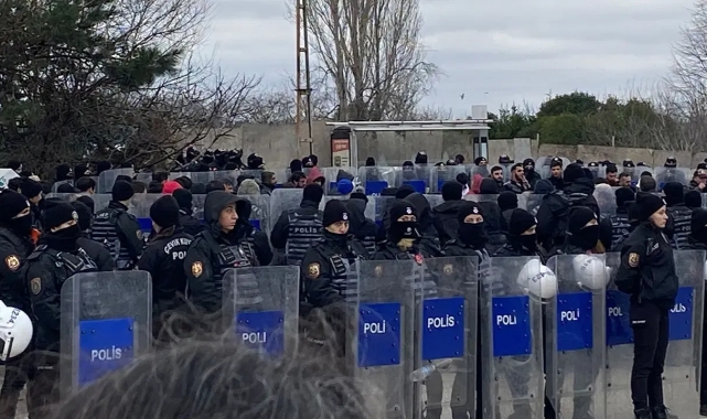 Pankartları ve sloganlarla yürüyüşe geçen işçilere çevik kuvvet ekipleri engel olurken, işçilerin eylemi öncesinde Beykoz Kaymakamlığı’nın 1 günlük ‘eylem yasağı’ kararı aldığı öğrenildi.