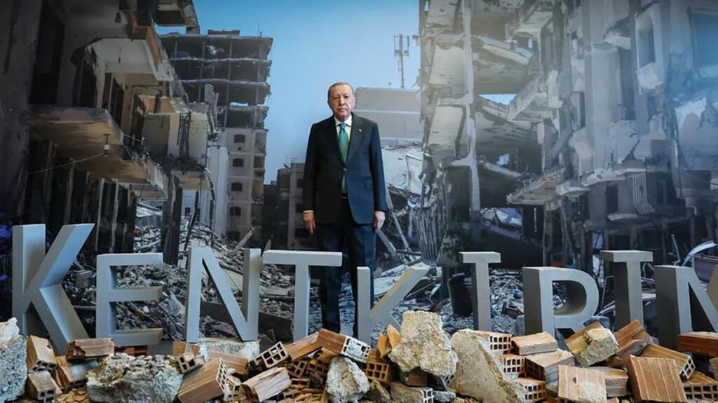 Yıkılmış bir şehrin enkazında, halkın acısı üzerine kurulmuş bir iktidarın fotoğrafıdır bu.