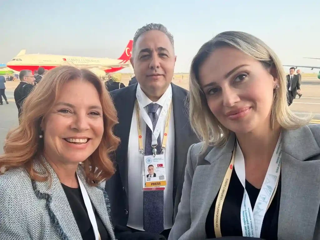 Erdoğan, Türk Devletleri Teşkilatı 12. Zirvesi’ne katılmak üzere gittiği Azerbaycan’daki temaslarının ardından yurda dönüşünde uçakta “gazetecilerin” sorularını yanıtladı. Uçakta yer alan gazetecilerin içinde Sinema oyuncusu Hülya Koçyiğit’in kızı Gülşah Alkoçlar da vardı.