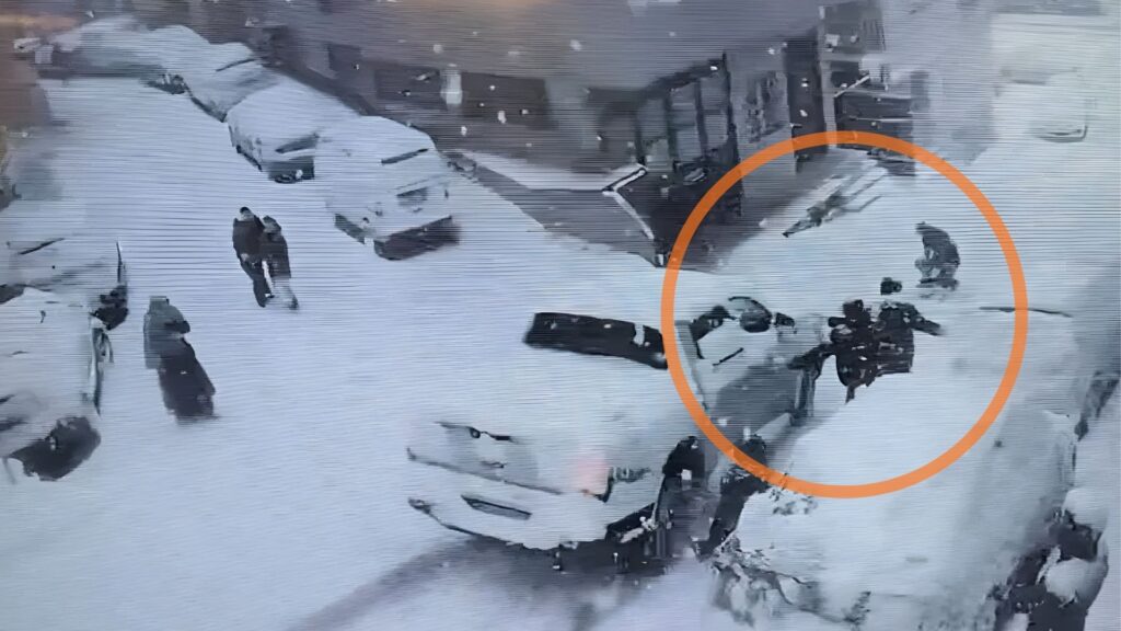 Güvenlik kameralarına yansıyan görüntülerde, karla kaplı yokuşta tutunamayan beyaz renkli bir kamyonetin hızla geri geri kaydığı görülüyor. O sırada sokakta kar topu oynayan çocuklar, üzerlerine gelen aracı fark edemedi.
