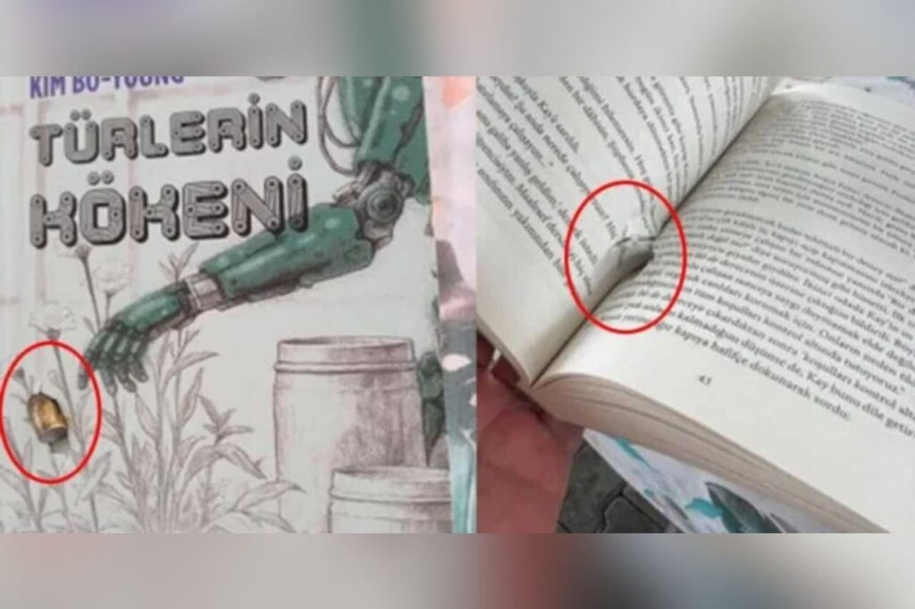 Livera Yayınevi Kurucusu Merve Bahçekapılı, Birgün’den Berkay Sağol‘a yaptığı açıklamada “Arkadaşlarımız her gün yaptığı gibi normal saatlerde standımızı açtı ve biz daha sonra Türlerin Kökeni kitabının üzerinde merminin saplandığını gördük. Güvenlik amirleri gelip baktı ve yorgun mermi olmayacağını söyledi” dedi.