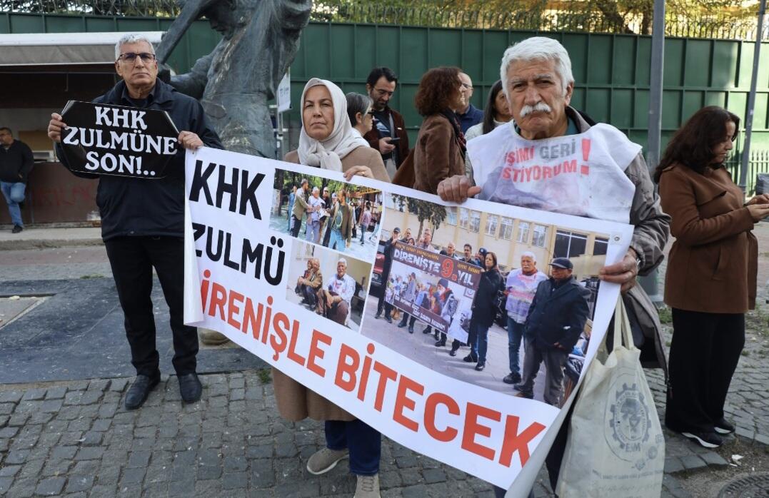“KHK zulmü direnişle bitecek” pankartı açan memurlar daha sonra Eğitim Sen önünde ablukaya alınan KESK’lilerle bir araya geldi.