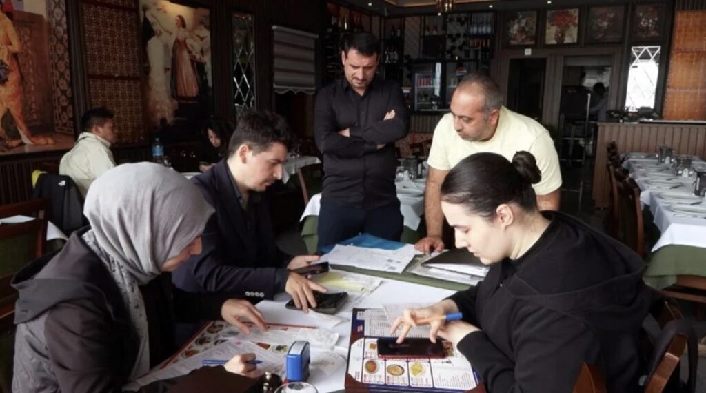 İstanbul Ticaret İl Müdürlüğü ekipleri restoranda denetim yaptı. Denetim sırasında ekipler, fiyat listesiyle turistlerin ödediği miktarı karşılaştırılarak tutanak tuttu.