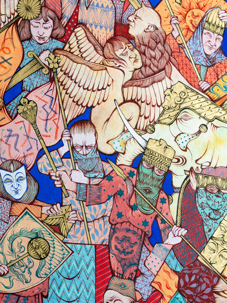 Fransız düşünür Jacques Rancière’in “duyumsanabilir olanın paylaşımı” yaklaşımından hareketle, sanatın politik ve estetik sınırlarını yeniden tartışmaya açan Dizdar, üretim pratiğinin merkezine minyatür ve tezhip gibi geleneksel kitap sanatlarını yerleştirirken, bu köklü disiplinleri çağdaş illüstrasyon, çizgi roman estetiği ve güncel görsel anlatı biçimleriyle ilişkilendiriyor. Sanatçı, minyatürün Batı resim geleneğiyle kıyaslanmasına karşı çıkarak, bu pratiğin kendi estetik olanaklarıyla bugün yeniden yorumlanabileceğini savunuyor.