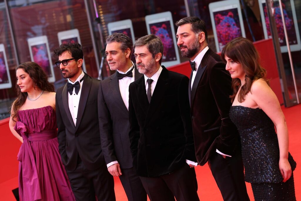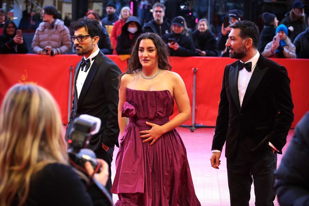 Gümüş Ayı ödüllü yönetmen Emin Alper ve oyuncular Berlinale’de. (© Rouzbeh Fouladi/ZUMA Press Wire)