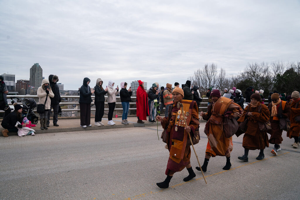 Keşişlerin geçtiği şehir ve kasabalarda yüz binlerce insan onları selamlamak için sokaklara çıkıyor. Özellikle şehir merkezleri dışında, ABD’de pek alışık olmadığımız bu manzara son derece şaşırtıcı. İnsanlar, bu yürüyüşe tanıklık etmek ve Budist rahipleri selamlamak için kar ve yağmura aldırış etmeden saatlerce yol kenarlarında bekliyor.
