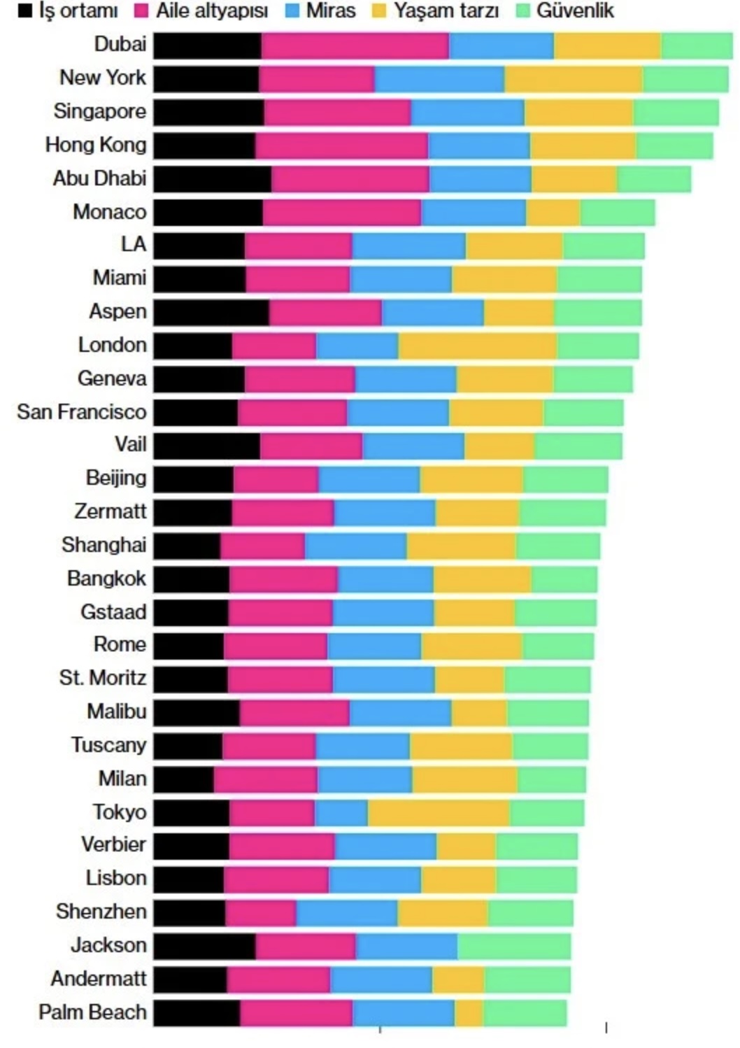 Şirket, iş dünyası için elverişli ortamın, varlıklı bireylerin taşınma kararlarında belirleyici hale geldiğini belirtti. Dubai ve New York, iş dostu ortamları, vergi avantajları ve jeopolitik istikrarları sayesinde sıralamanın zirvesine yerleşti.