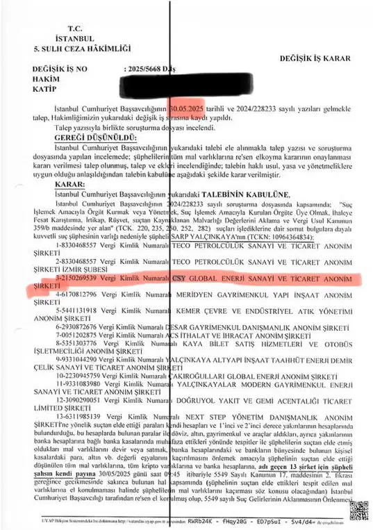 “Halk TV’de açıkladığım tuhaflığı belgesiyle kamuoyunun takdirine sunuyorum. İBB kumpas davasında tuz koktu! Sarp Yalçınkaya 26 Mayıs’ta tutuklanıyor. Ne hikmetse tutukluyken, ‘tahliye vaadiyle’ 300 Milyon TL’yi bir kuyumcuya transfer etmesine izin veriliyor. Bu devasa para transferi biter bitmez, hemen ertesi gün (30 Mayıs) savcılık şirketlere el koyuyor.