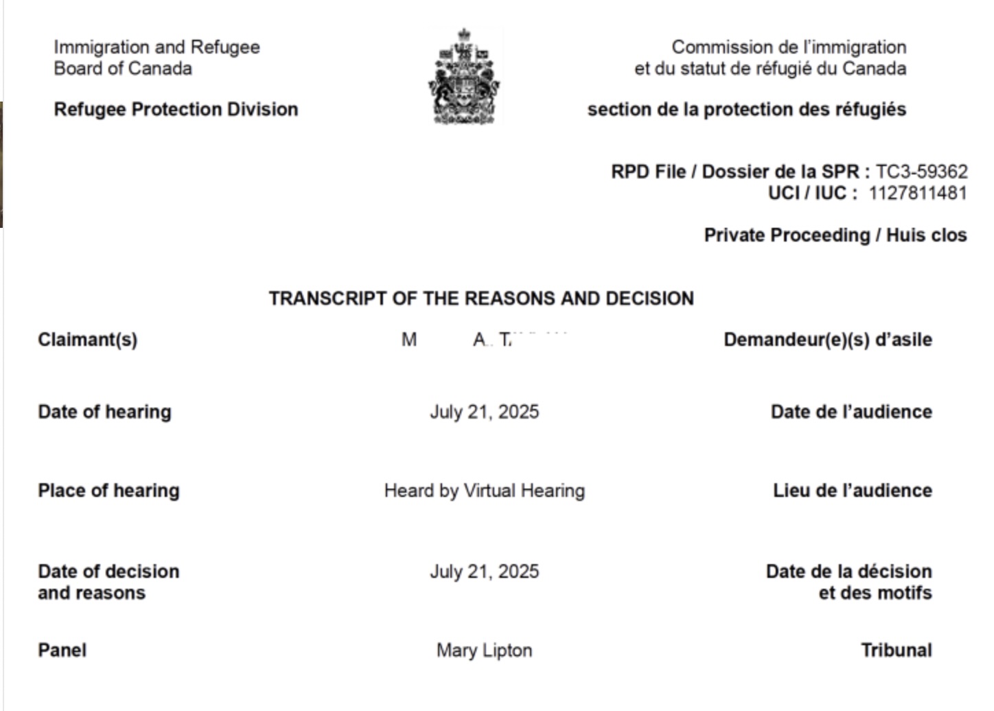 21 Temmuz 2025’te yapılan ikinci duruşmada, Kurul üyesi Mary Lipton, başvurucu M.A.T.’nin talebini kabul etti.