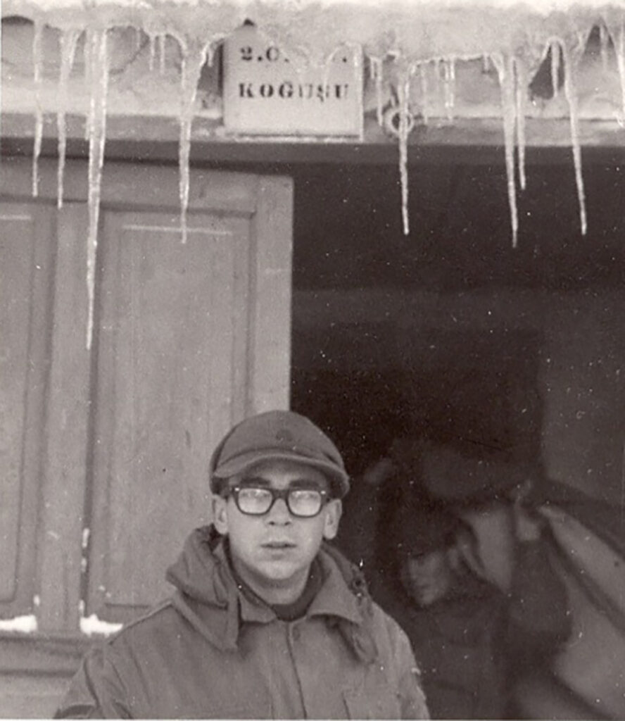 Herkül Millas: Koğuşumuzun önünde. Sobamız yanmazdı. (Fotoğraf: Herkül Millas Arşivi)