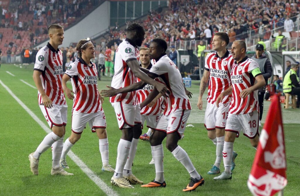 Alman teknik direktör Thomas Reis yönetimindeki Samsunspor, UEFA Konferans Ligi 2. haftasında ağırladığı Ukrayna ekibi Dinamo Kiev’i 3-0 mağlup ederek ikide iki yaptı ve puanını 6’ya yükseltti. Kırmızı-Beyazlı ekip, ilk maçında Polonya temsilcisi Legia Varşova’yı Musaba’nın golüyle 1-0 yenmişti.